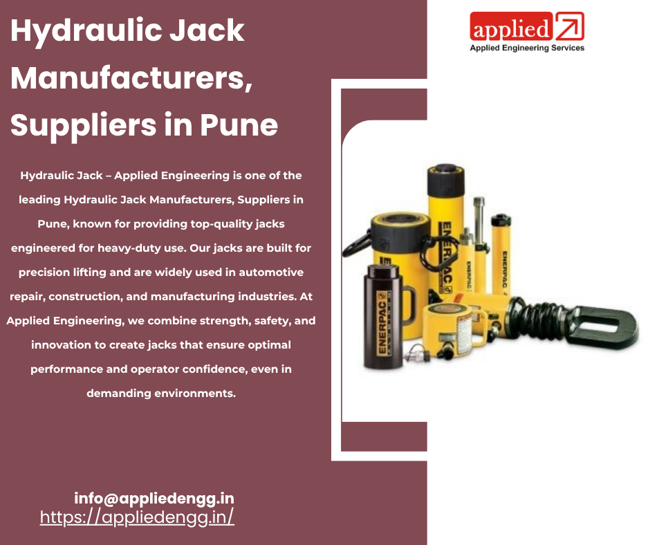 Hydraulic Jack â Applied Engineering is one of the leading Hydraulic Jack Manufacturers, Suppliers in Pune, known for providing top-quality jacks engineered for heavy-duty use. Our jacks are built for precision lifting and are widely used in automotive repair, construction, and manufacturing industries. At Applied Engineering, we combine strength, safety, and innovation to create jacks that ensure optimal performance and operator confidence, even in demanding environments.
