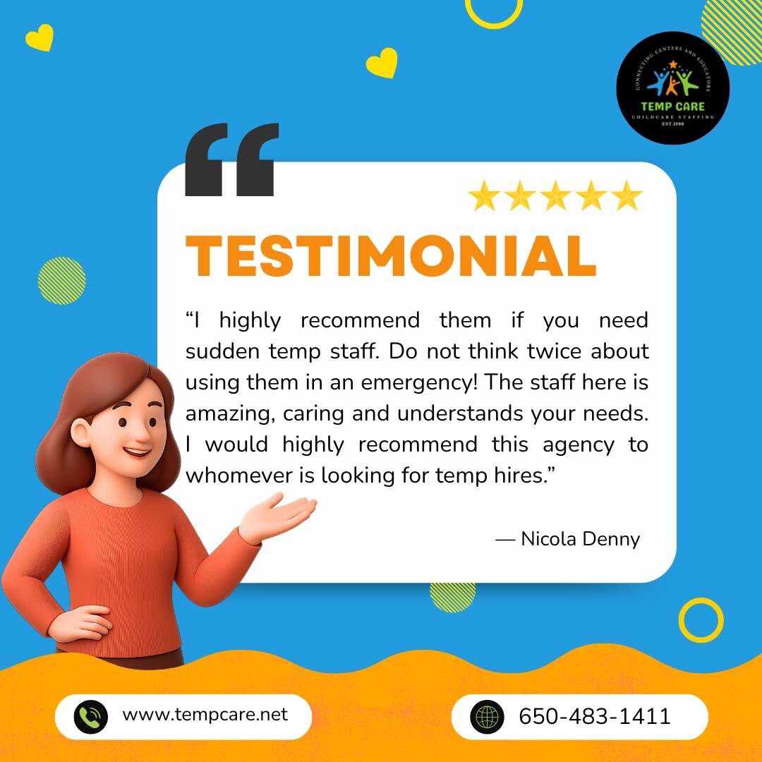 "I highly recommend them if you need sudden temp staff. Do not think twice about using them in an emergency! The staff here is amazing, caring and understands your needs. I would highly recommend this agency to whomever is looking for temp hires.” — Nicola Denny