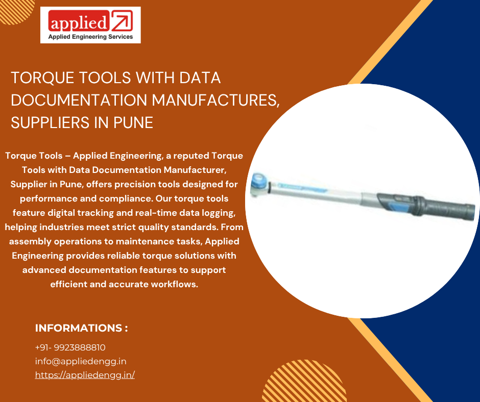 Torque Tools â Applied Engineering, a reputed Torque Tools with Data Documentation Manufacturer, Supplier in Pune, offers precision tools designed for performance and compliance. Our torque tools feature digital tracking and real-time data logging, helping industries meet strict quality standards. From assembly operations to maintenance tasks, Applied Engineering provides reliable torque solutions with advanced documentation features to support efficient and accurate workflows.