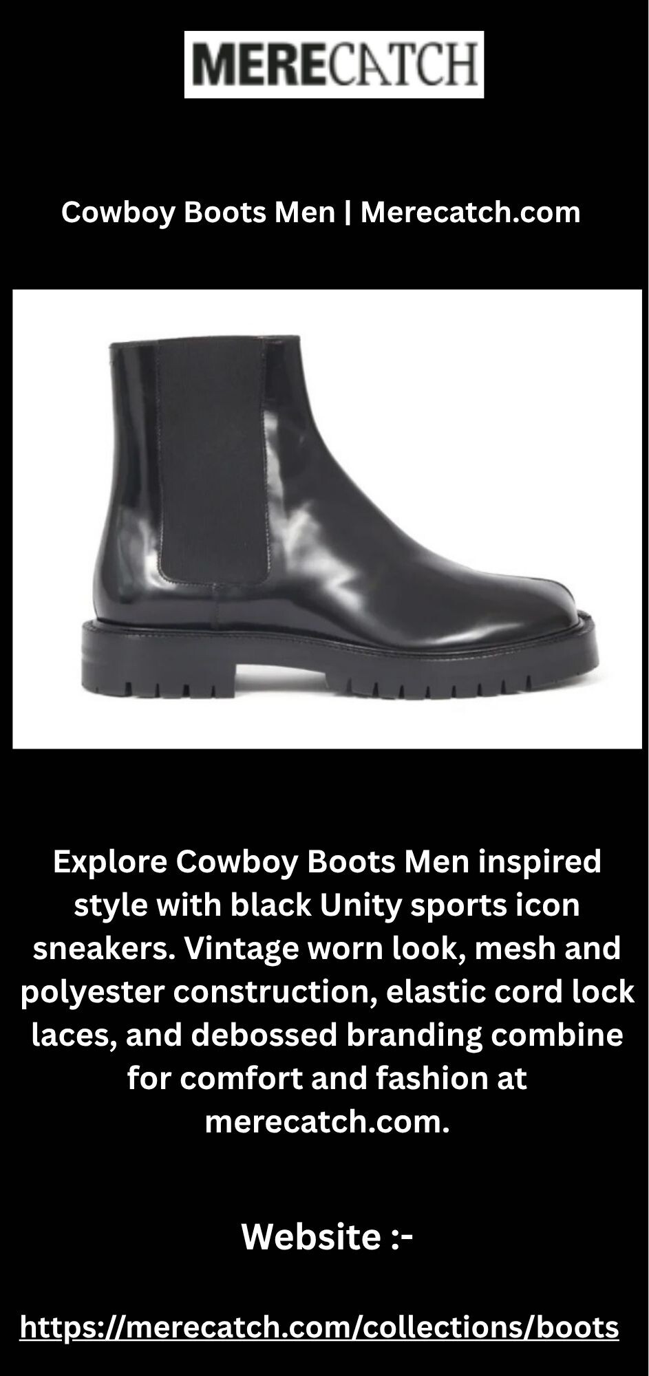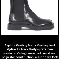 Explore Cowboy Boots Men inspired style with black Unity sports icon sneakers. Vintage worn look, mesh and polyester construction, elastic cord lock laces, and debossed branding combine for comfort and fashion at merecatch.com.