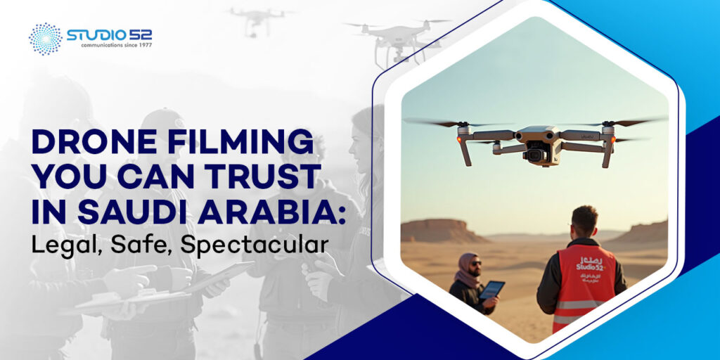 Discover Studio52’s fully compliant drone filming services in Saudi Arabia. From securing permits to capturing cinematic aerial footage, trust us for safe, legal, and high-quality visuals across industries.