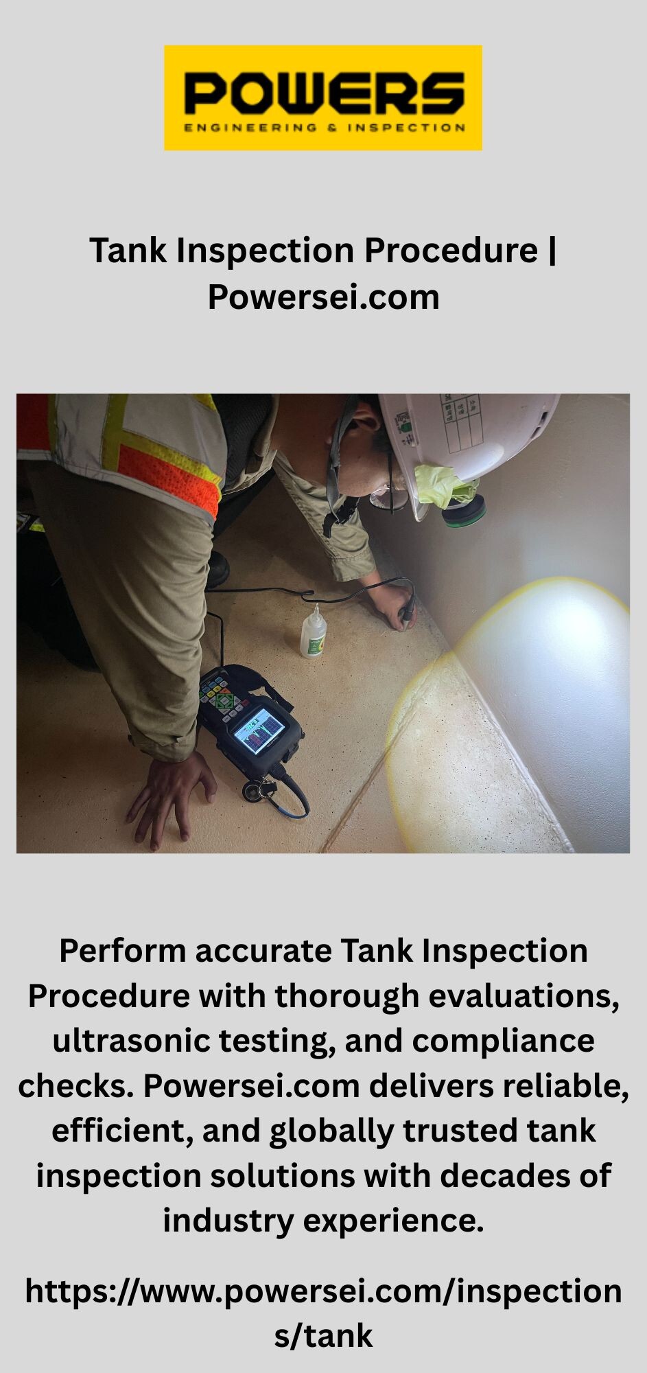 Perform accurate Tank Inspection Procedure with thorough evaluations, ultrasonic testing, and compliance checks. Powersei.com delivers reliable, efficient, and globally trusted tank inspection solutions with decades of industry experience.